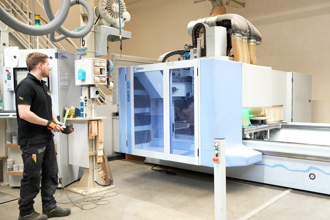 This process is further supported by CNC programs that define every individual machining step with exact precision. What is planned digitally is transferred directly into production. The result is a coordinated interaction between people, software, and machinery, where every detail is executed accurately. Sebastian Wünsch, Head of Engineering at REINHOLD KELLER, summarizes it as follows: “Our digital planning ensures that everyone involved works with the same information. This creates process reliability and gives us control over quality, timelines, and costs. In the end, the precision of the planning is clearly reflected in the finished furniture.”